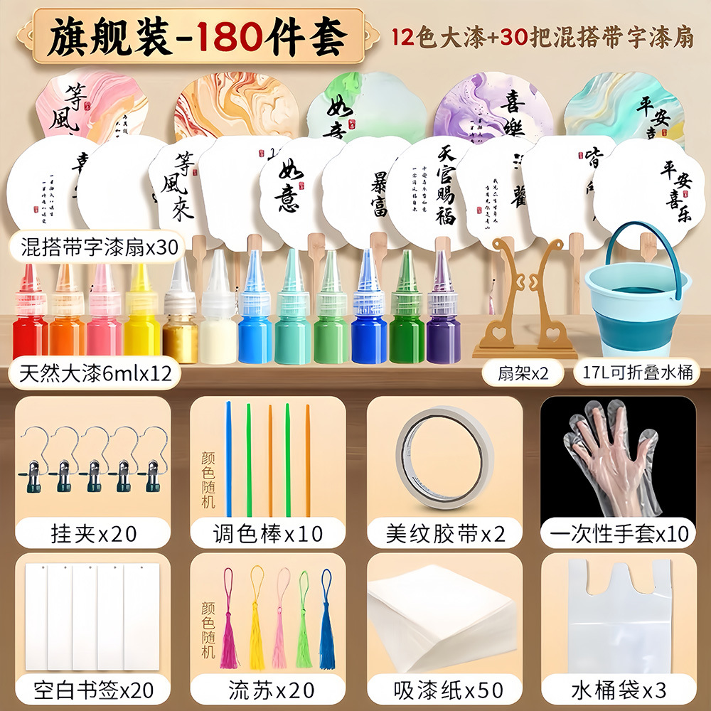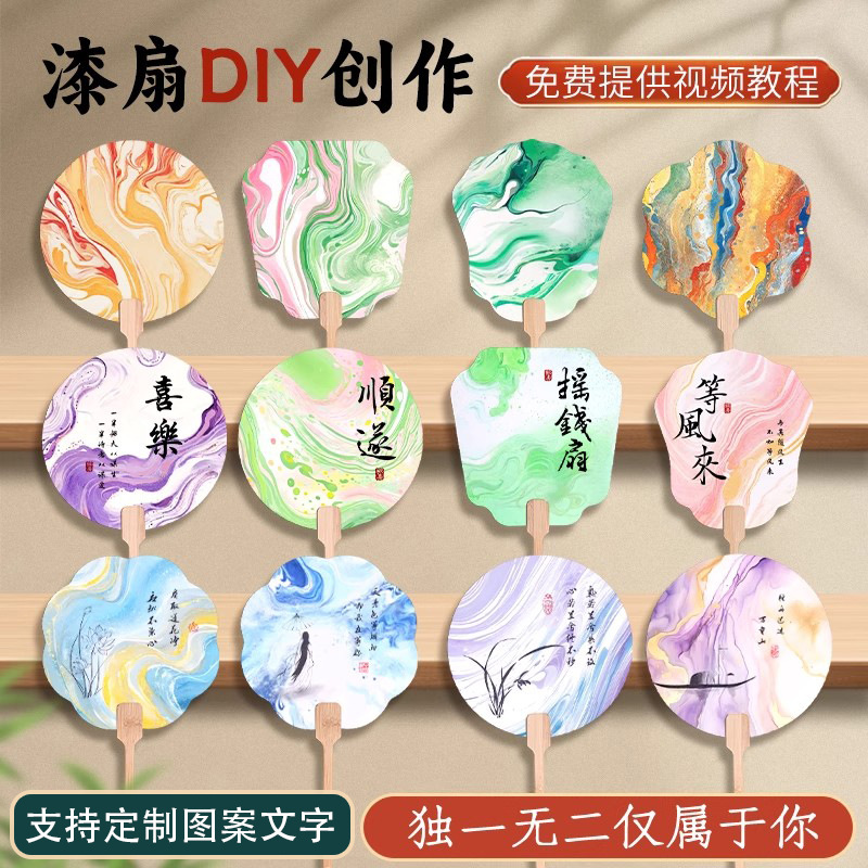 漆扇専用扇子diy漂白塗料材料包文字宣紙空白団扇帯字金帯図金大漆扇