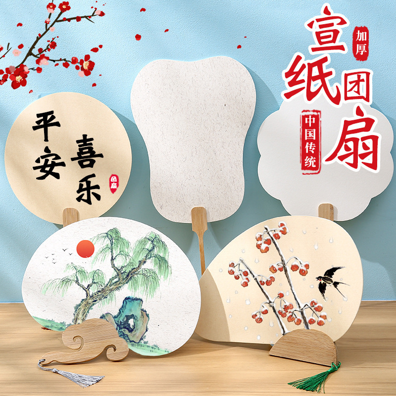 空白宣紙扇児童diy塗装古風扇子竹柄団扇幼稚園空白扇子水彩画