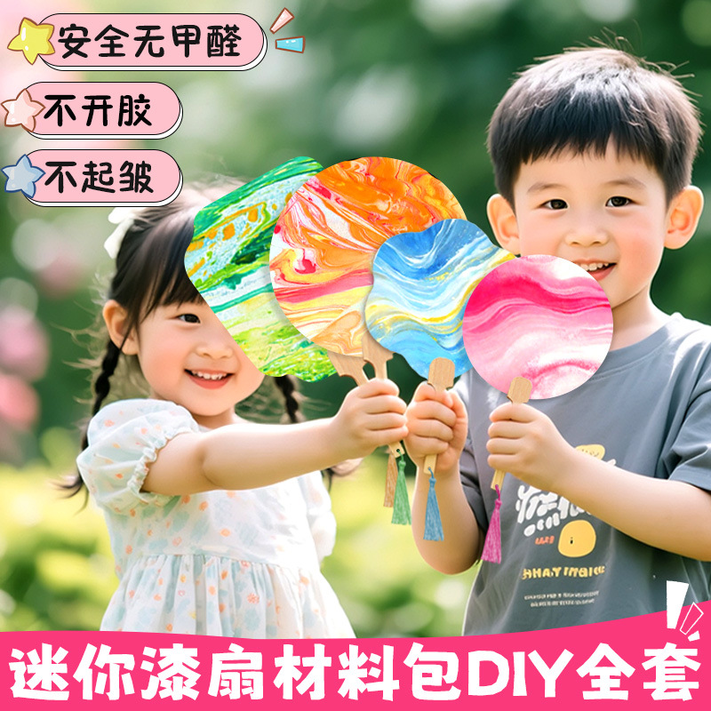 ミニ塗装ファン作成材料パッケージフルセット子供の手作り diy 空白ファン漂白塗装セットラウンドファン pvc バッチ