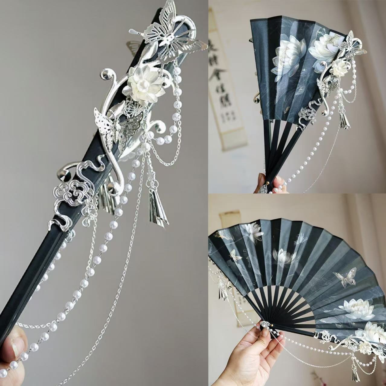 天官祝福花城謝憐派生扇子cos手持ち扇子古代風写真小道具豪華な扇子アクセサリー