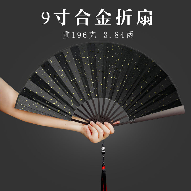 中国風10インチ金属折り扇男絹布扇面合金扇防身非チタン合金扇子父の日プレゼント