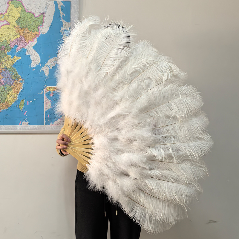 羽扇子チャイナドレスダンスガチョウぬいぐるみjk漢服写真小道具美しい中国風の黒と白の扇子
