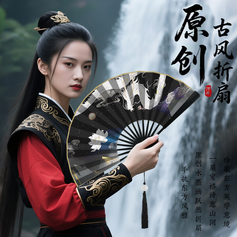 カンフー扇子黒黒骨響扇武術扇成人児童ダンスショー扇風機太極扇クロスボーダー専用