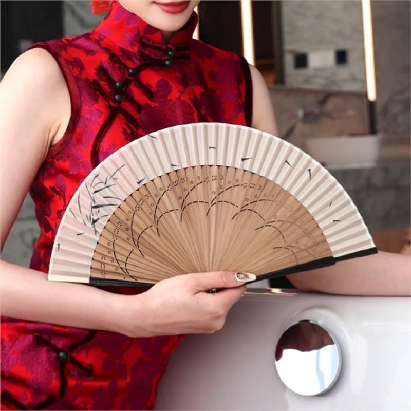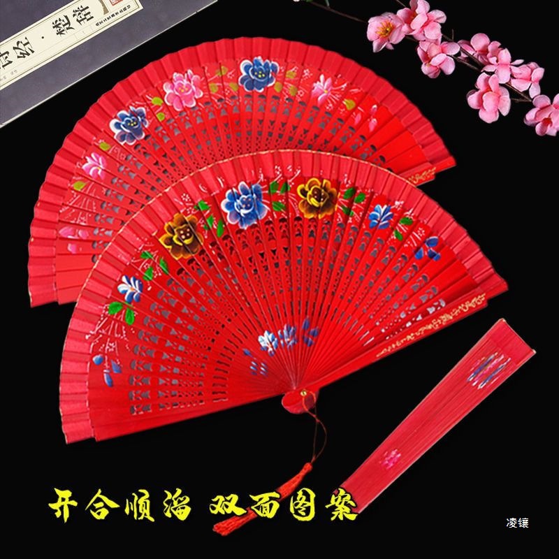古風折扇両面チャイナドレスショー扇子舞踏扇開合スムーズ舞台演技実木折り畳み扇子