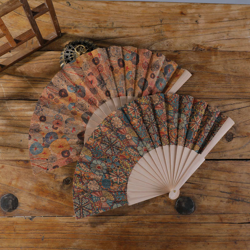 夏和風の新鮮な布製扇子扇子古代スタイルのミニポータブル折りたたみ扇子男性と女性の学生用