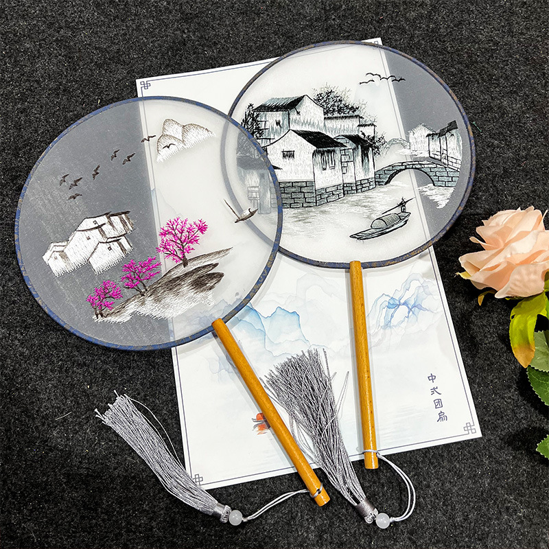 水郷古鎮刺繍団扇宮扇漢服ショー円扇ダンス扇子江南特色扇子プレゼント団扇