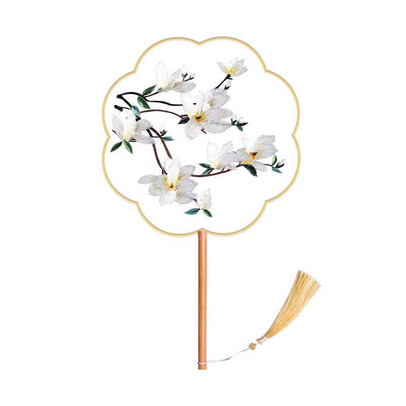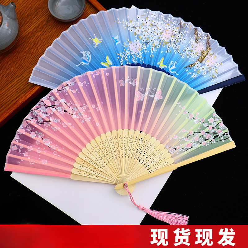 扇子夏古代風クールで耐久性のある扇子両面刺繍半透明ロングハンドルダンス女性扇子風漢服工場卸売