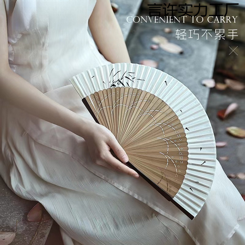 扇子扇子中国風古代風新中国風扇骨家庭用家庭用日常使用新しいシンプルな小さな厚みのある丸い扇子