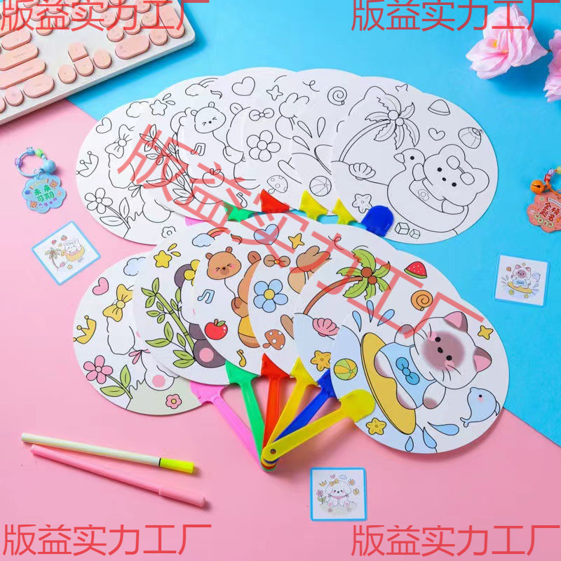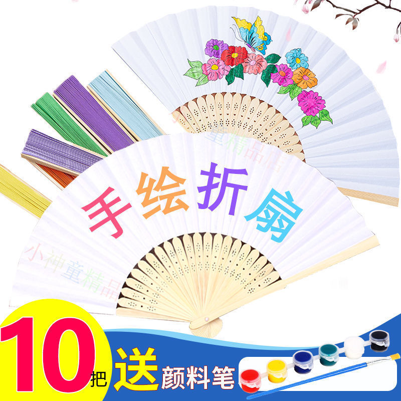 空白扇子カラー折り紙扇子幼児幼稚園文字絵画落書き扇子宮殿円形紙扇子ぬりえ扇子卸売