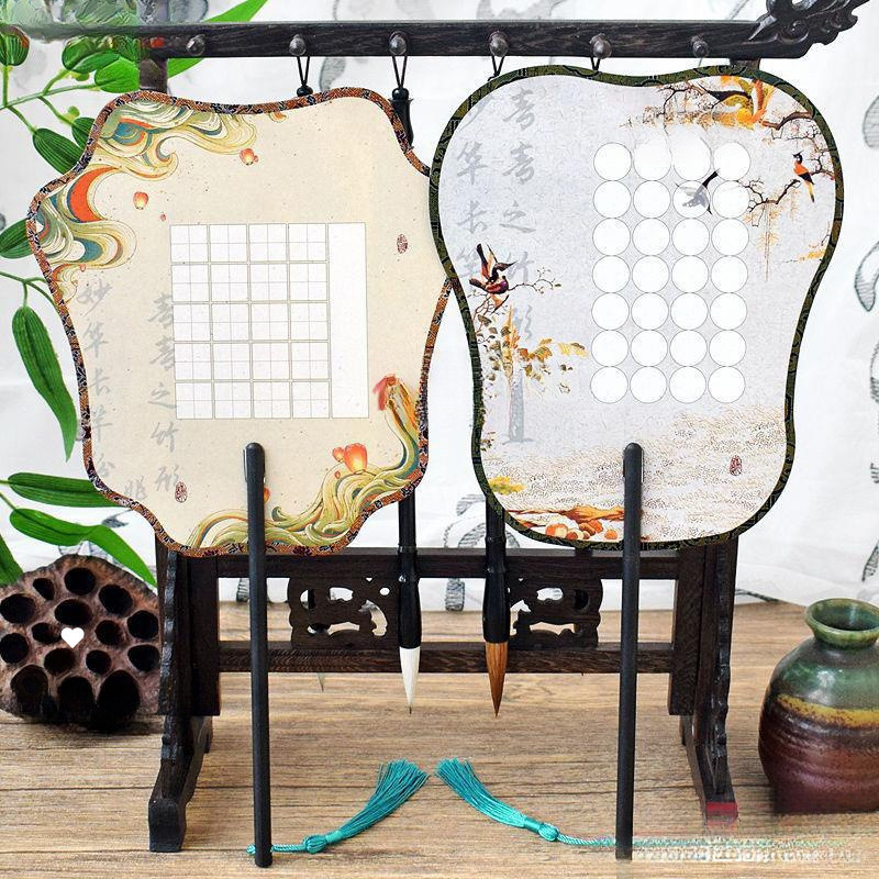 中国扇子硬ペン書道用紙両面厚みのある扇子作品紙ハンドル付きレトロスタイル扇子テイ字グリッド