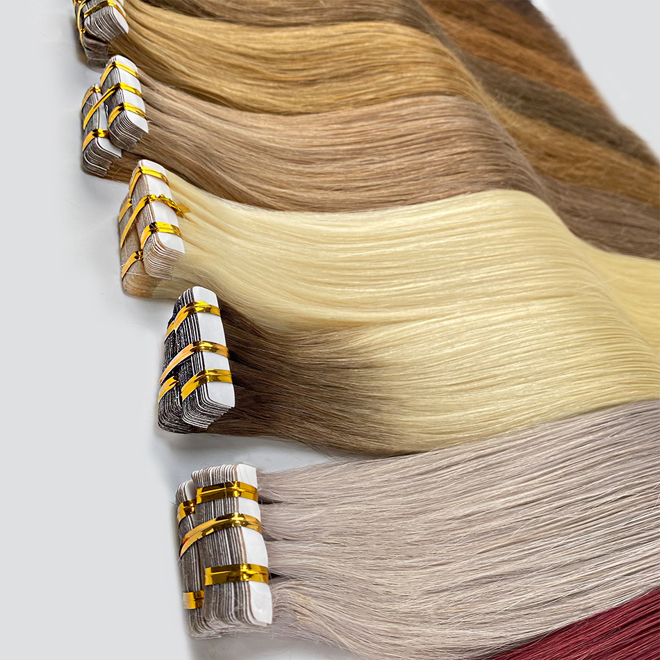 欧米のかつらの女性の本物の髪のカラーpuのフィルムの髪のhuman tape hairの髪の接着剤の髪