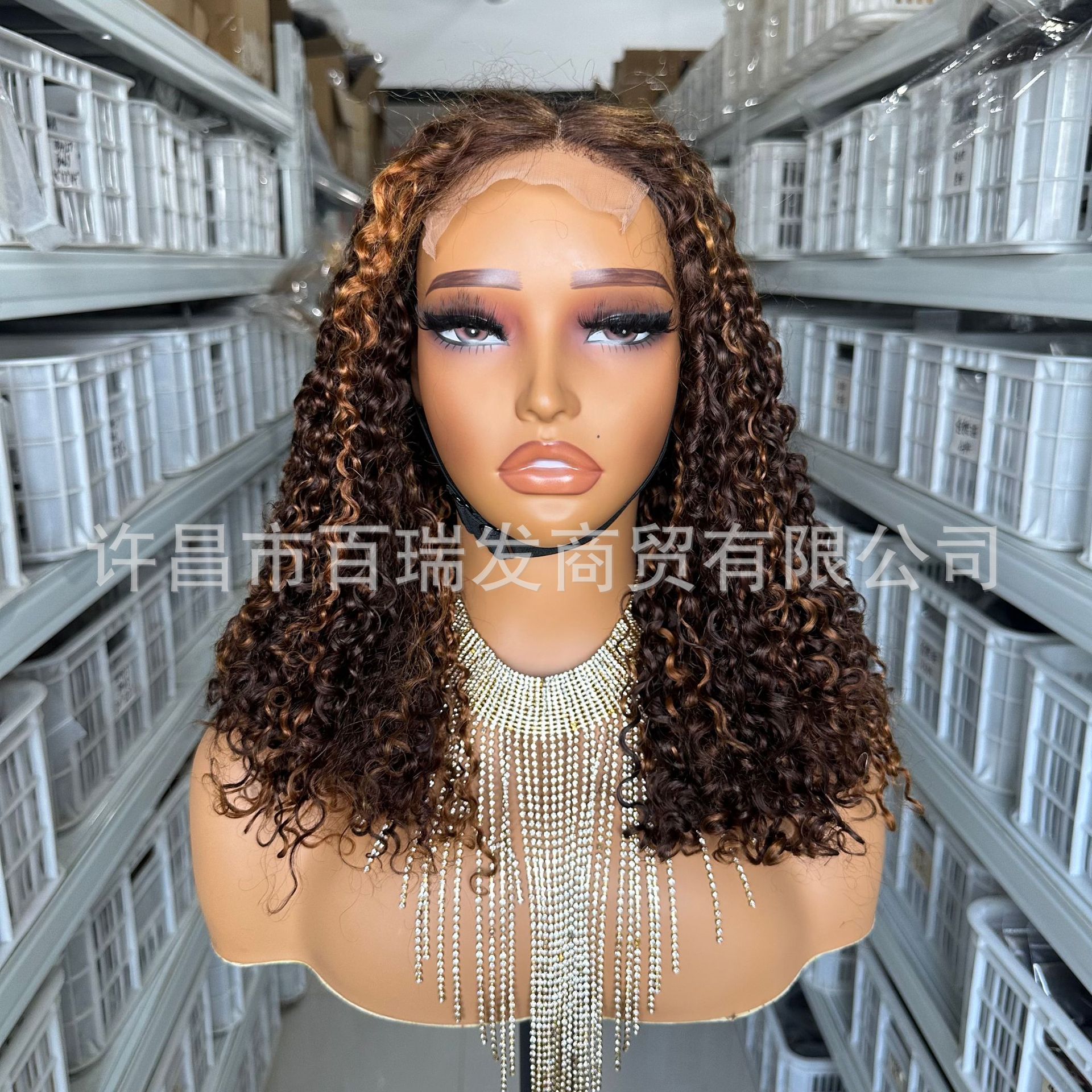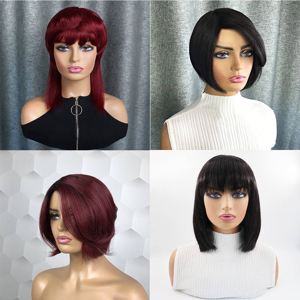 ピアノカラークロージャーピクシーカール人毛ウィッグウィッグヘッドギア在庫あり