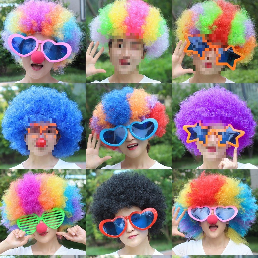 爆発発お笑い道化師の髪カラーかつらセット幼稚園の演技材料が頭セットの演技道具を責める