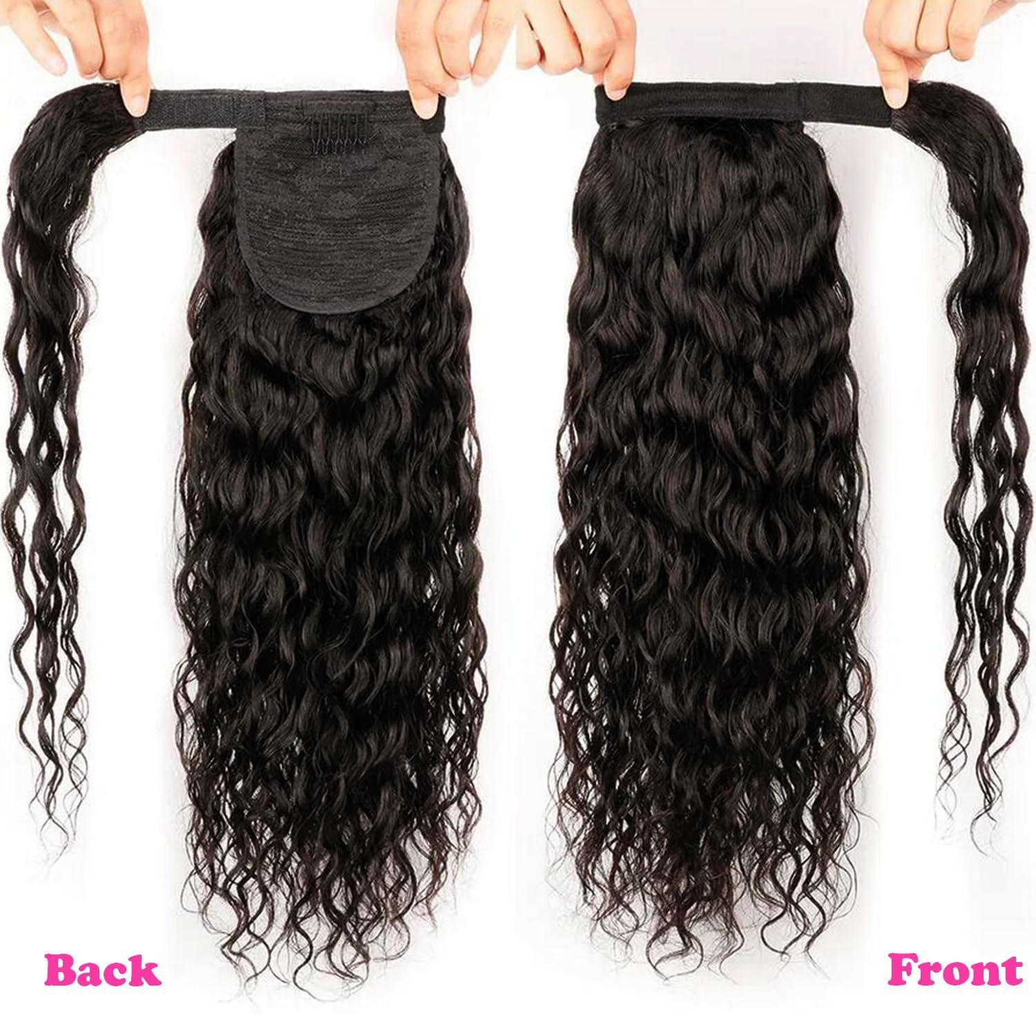 ヨーロッパとアメリカの本物の人毛ウィッグウォーターウェーブポニーテールベルクロポニーテール