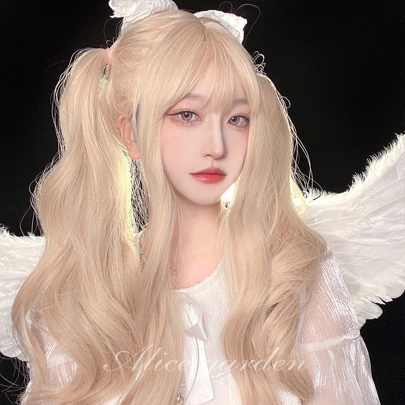 白姫顕金色かつら超仙長巻き羽かつら波巻き白トウモロコシ森系ふわふわウール巻き