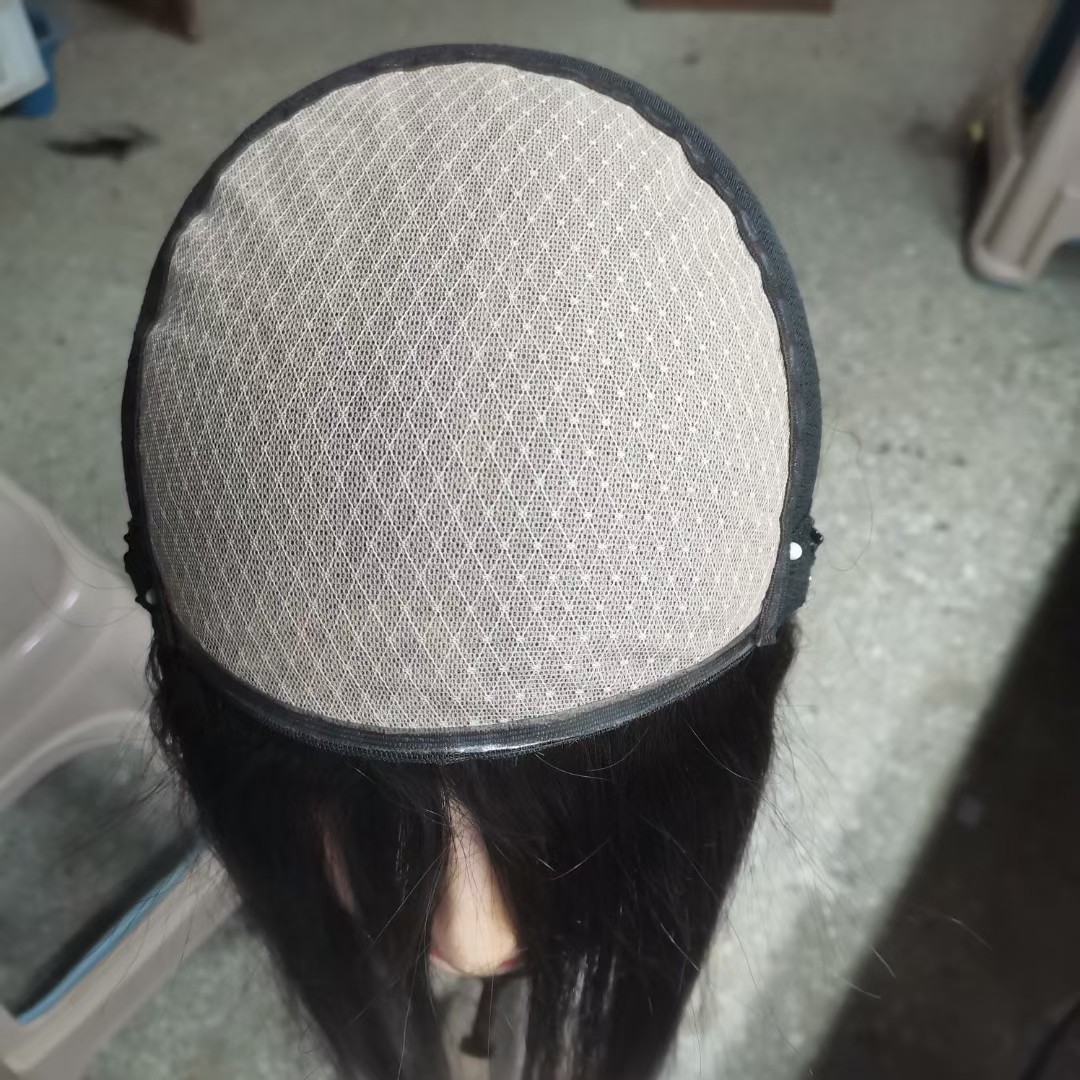 女性用ニードルスピン60メッシュ編み込みヘアウィッグブランクヘッドギアフルリアルヘア手織り18cmブランクナチュラルカラー