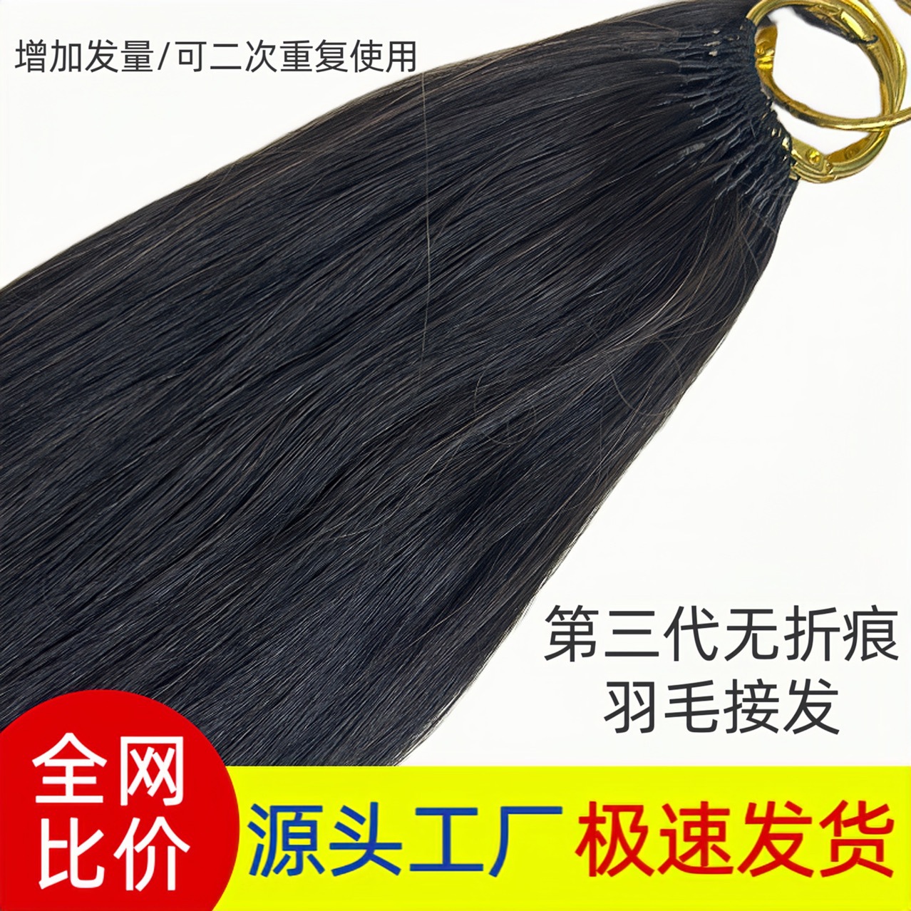 三世代の羽毛エクステ、人毛、折れ毛なし、目立たない、痕跡なし、小さな理髪店向け、人毛手織り
