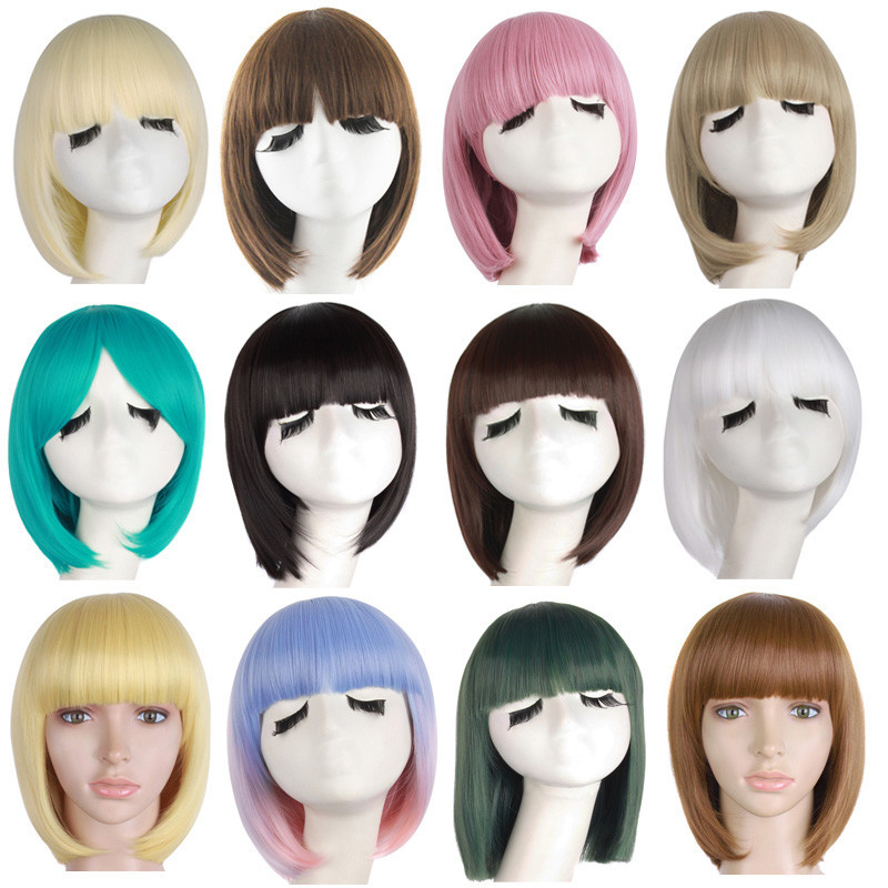 女性のショートヘアの多色のかわいい気質の波の頭の粉の紫の自然な万能のアニメの斉の前髪のBOBOの頭のcosの試合