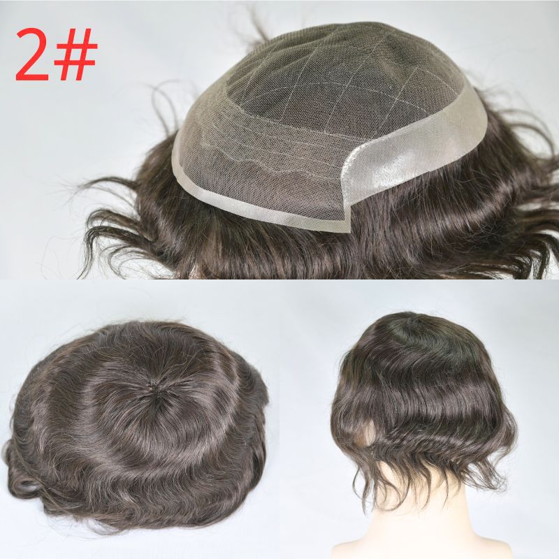 既製品OCT7X9in1B 2 # 4 # 欧米男性用ヘアピース(レース+PU手植え)