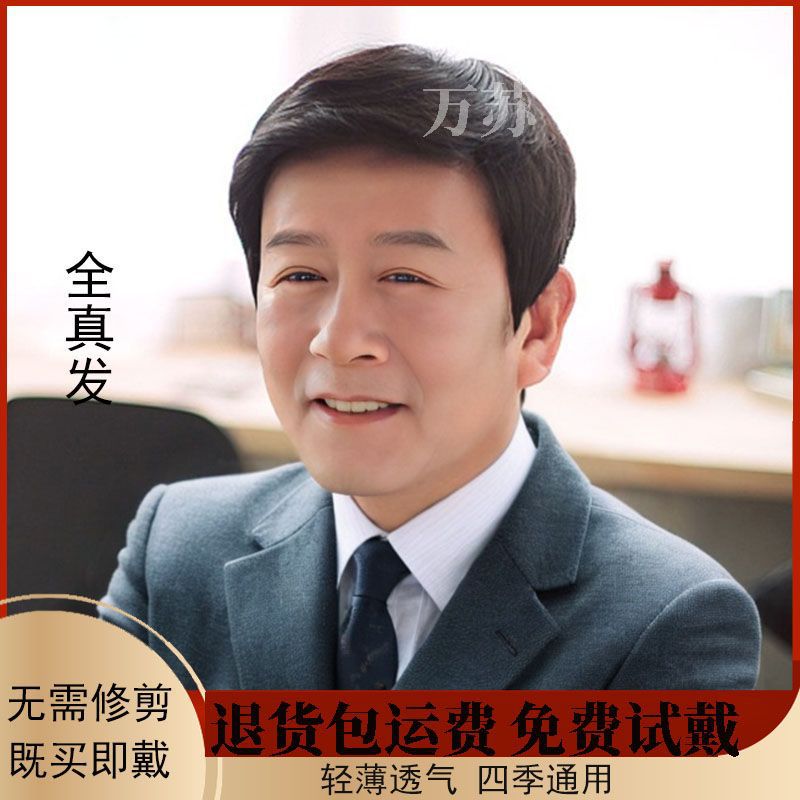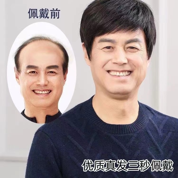 男性のかつらのショートヘアは本当にかっこいいです。見えない頭の上で髪を直します。白髪を隠します。