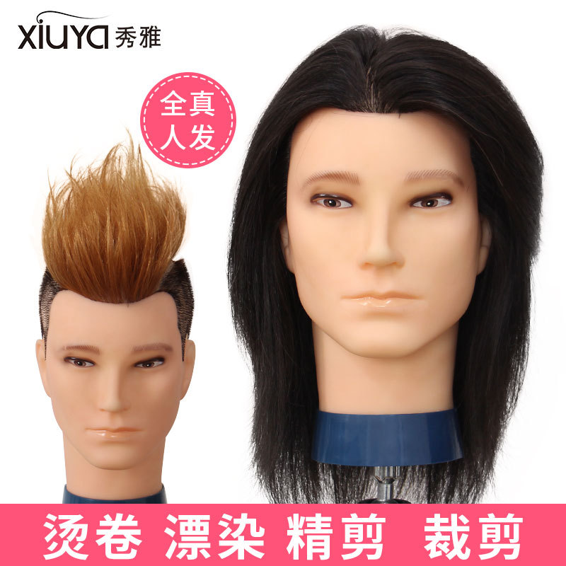 美髪モデルの男性ダミーのショートヘアはパーマで染められます。