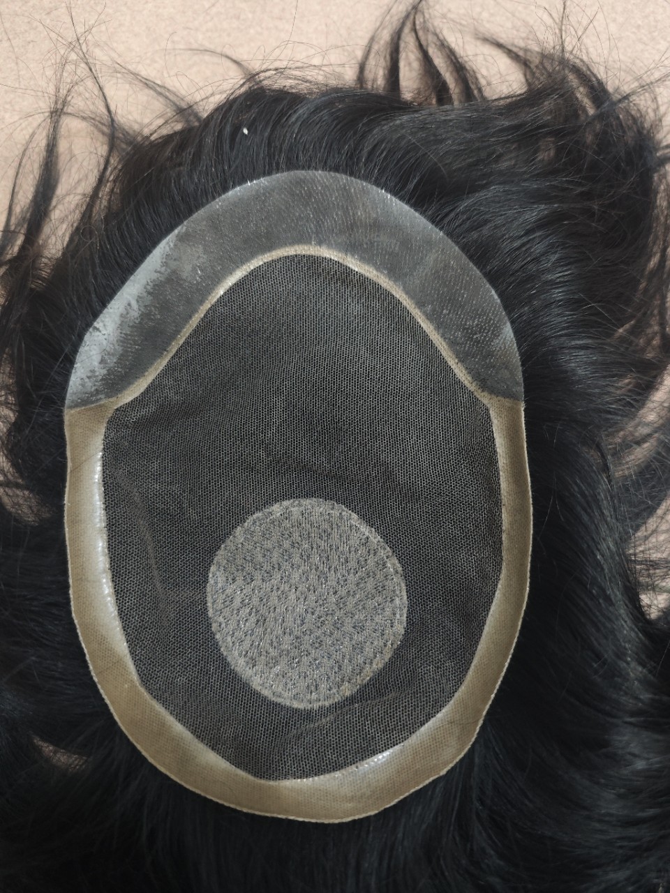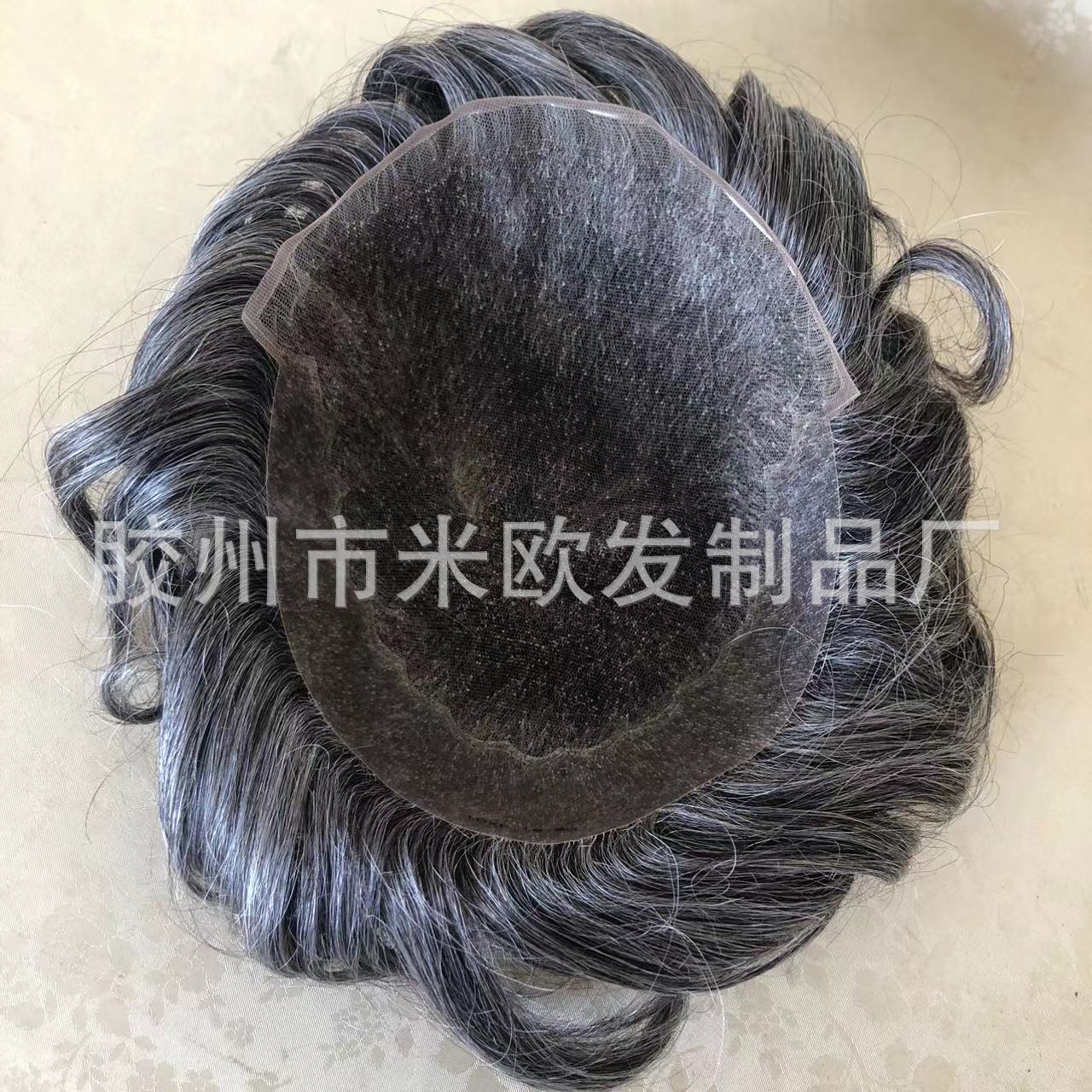夏用の薄くて通気性のあるアイスシルクネット、完全に手織り、頭皮を模倣した人毛の男性用ウィッグではありません。