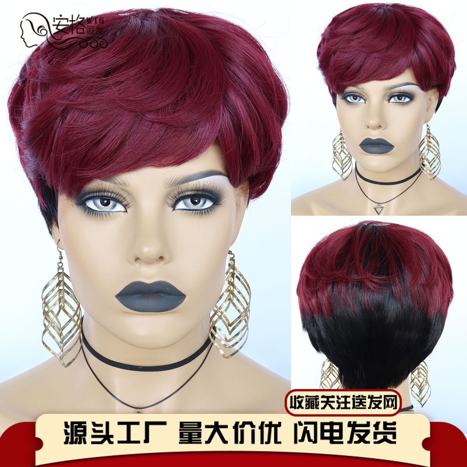 国境を越えたソースメーカー卸売り欧米ファッション黒色個性短髪化繊高温糸薔薇ネットかつら