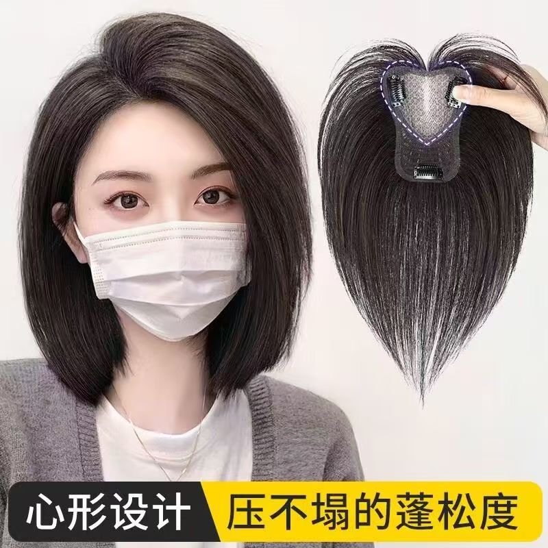 ヘアピース 人毛ウィッグ 女性用 ヘアピース 両側に隠せる増毛 トップヘアピース ストレートヘア ふんわりヘアピース