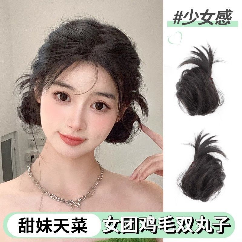 女性用ローカットチキンフェザーボールヘッドウィッグ、模擬ヘアクリップ、つぼみヘッド、ふわふわ高級ヘアアーティファクトウィッグバッグ