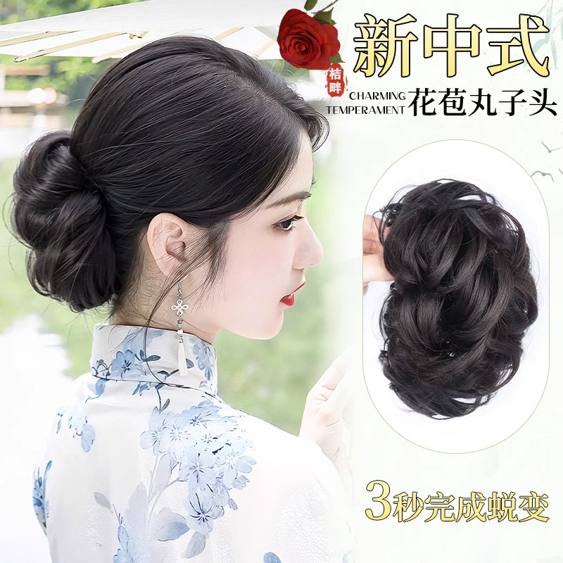 女性用の丸いヘアクリップ、怠惰なスタイル、花のつぼみヘア、人工毛、頭頂部の高さ、髪の量の増加、新しい中国風のヘアパッケージ