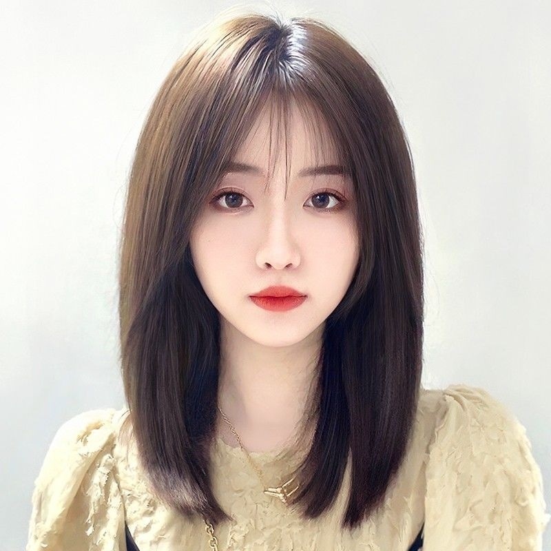 女性用ウィッグ、ミディアムロングヘア、人毛、軽くて薄い、フル針、ナチュラル、フルヘッドギア、本物の髪、年齢を軽減する鎖骨の髪