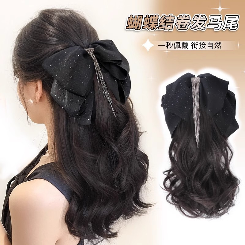 西洋スタイルのポニーテール女性のタッセルリボンクリップインターネット有名人模擬髪低結び目ハイ結び模擬髪ポニーテール帽子新しいスタイル
