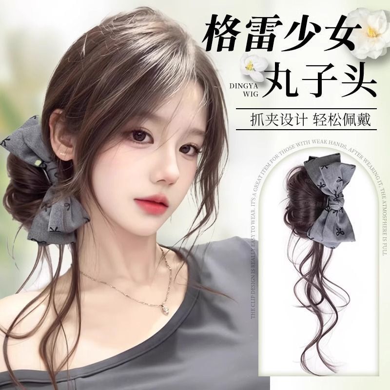 女性用リボンボールヘッドウィッグ、自然な模擬グリッパー、ドラゴンウィーブボールヘッド、増毛、ふわふわヘアアーティファクト