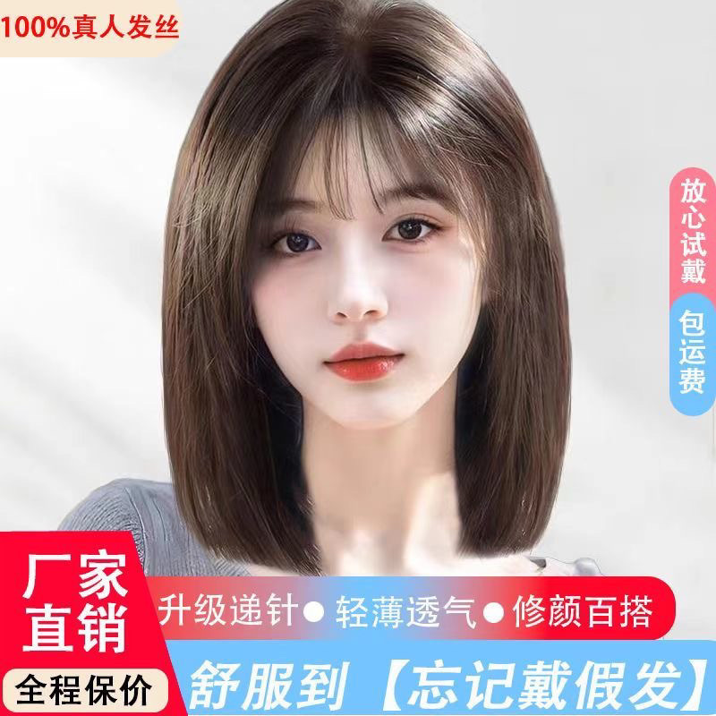 ウィッグ、本物の髪、完全な人間の髪、自然なショートヘア、女性用フルヘッドウィッグ、新しいボブヘア、鎖骨、フルウィッグ、ロングヘア