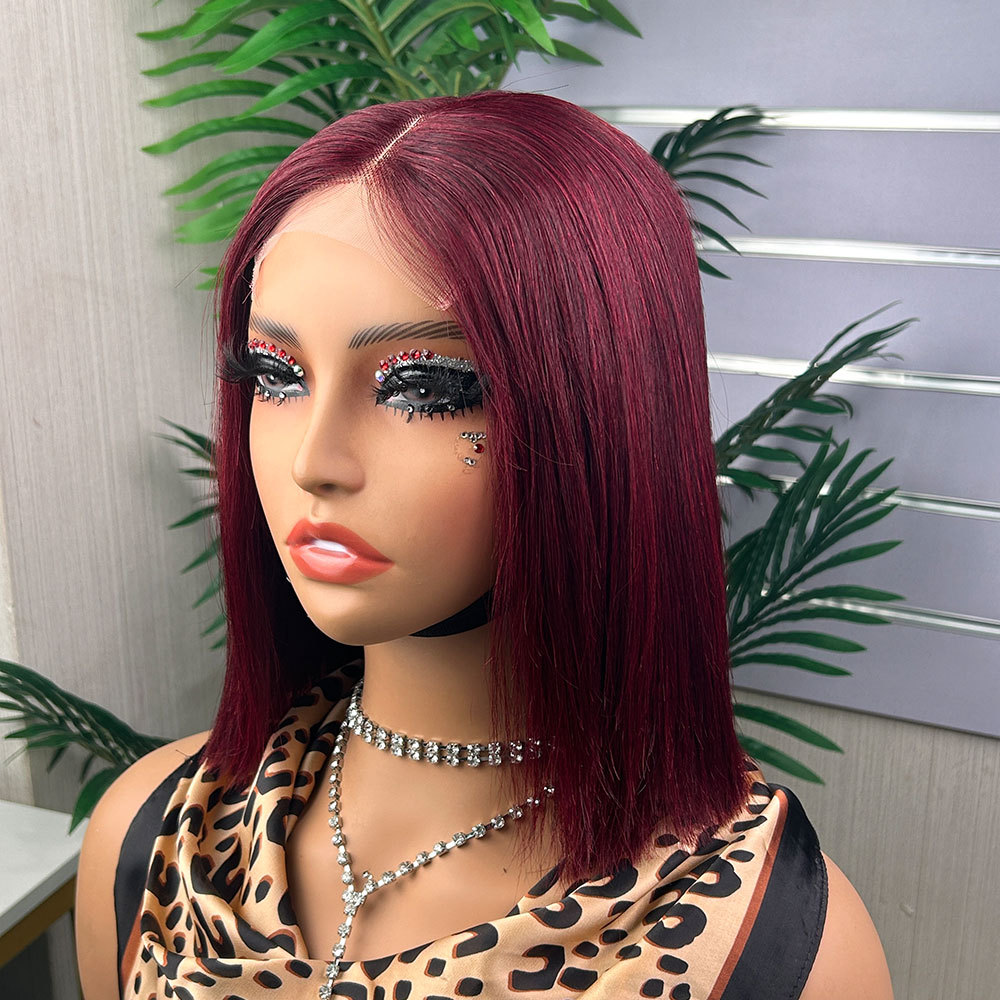 ヨーロッパとアメリカの女性のフロントレースボブショートストレート人毛人毛ストレートボブヘアレースヘッドギア