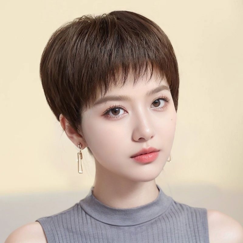 夏の女性のためのショートヘアウィッグ、自然な年齢軽減、甘くてファッショナブルなシミュレーションフルヘッドウィッグセット2024新しいスタイル