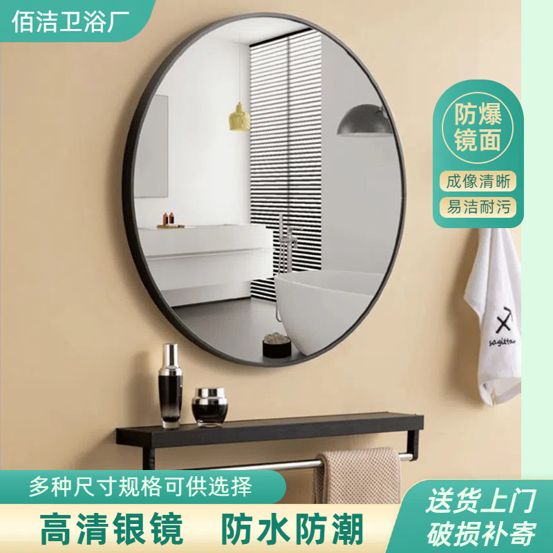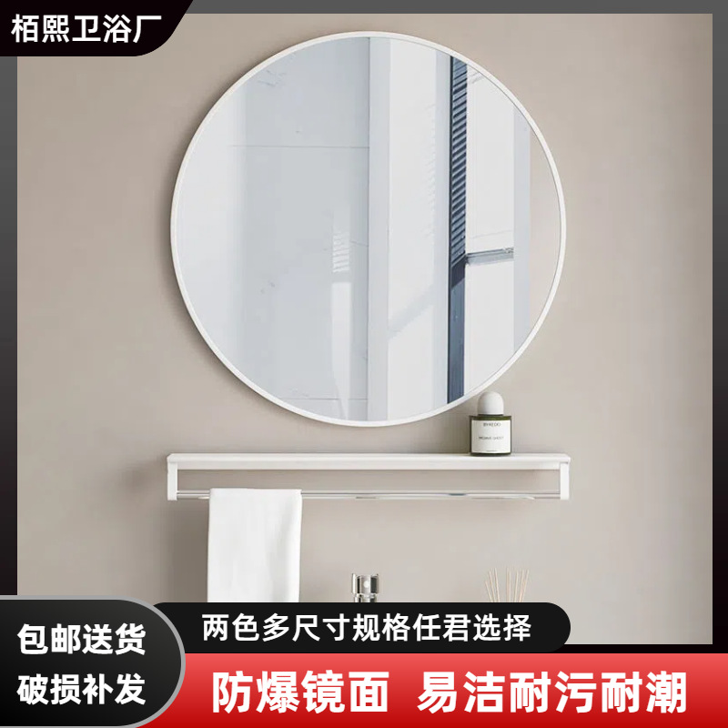 化粧鏡浴室アルミ合金鏡円形鏡家庭用トイレ掛け壁式レンズタオルバー付き棚