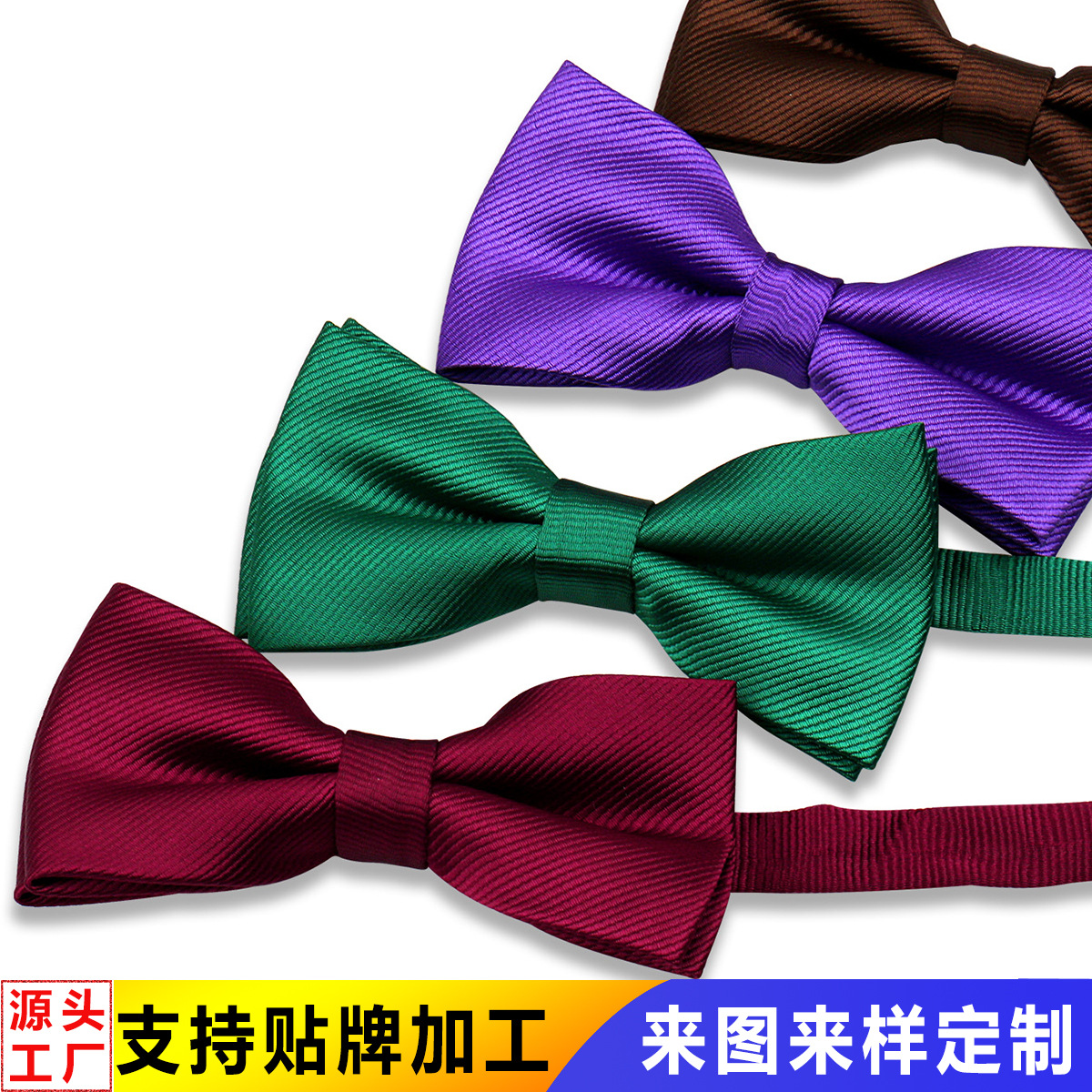 工場卸売りシルクサテン感英倫純色黒ワイン赤青正装新郎男性二重交差蝶ネクタイ
