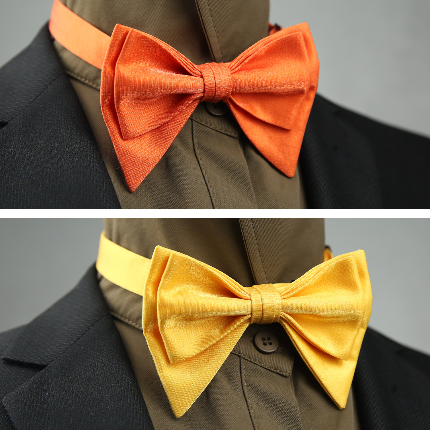 男性用蝶ネクタイベルベット二重の大きな蝶結び無地単色ワインレッド個性ファッション牛角モデル