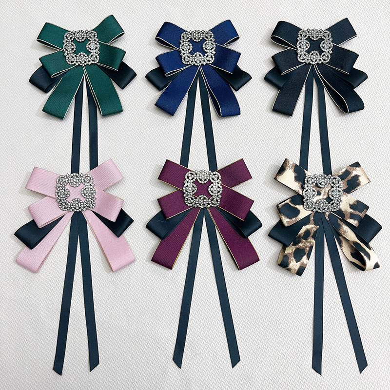 韓国の布芸の蝶結びのブローチはレトロな合金のドリルのピンのシャツのアクセサリーを結びます。