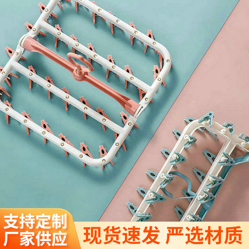 靴下干しハンガー多クリップ折り畳み回転ベランダ家庭用下着多機能穴なしハンガー神器
