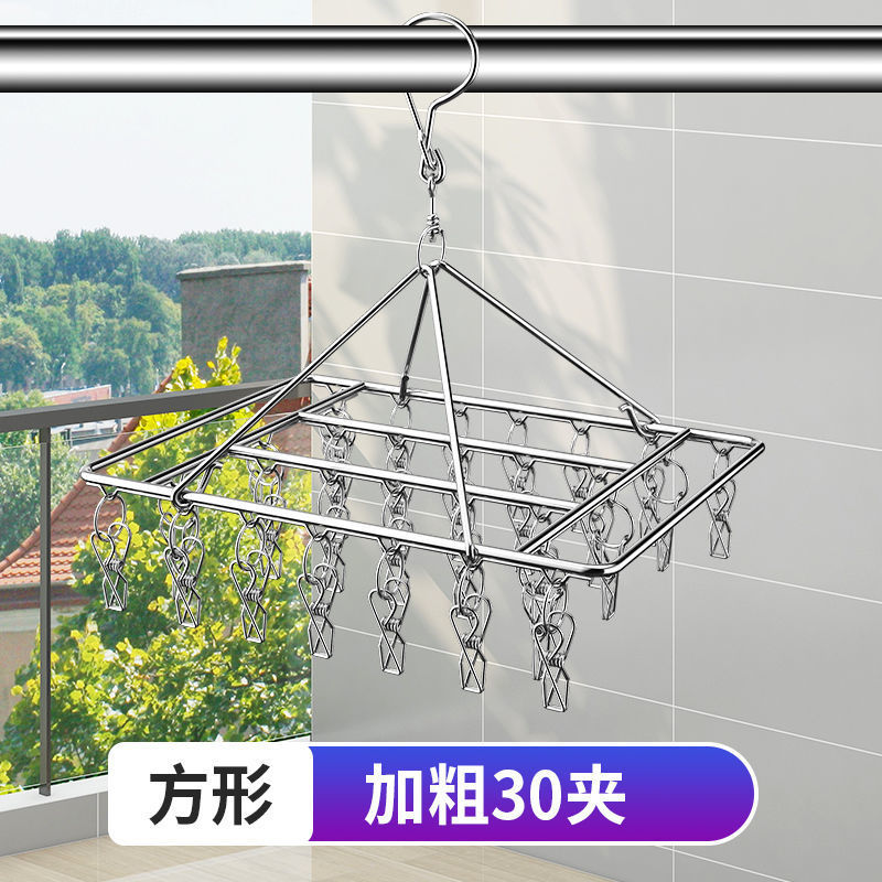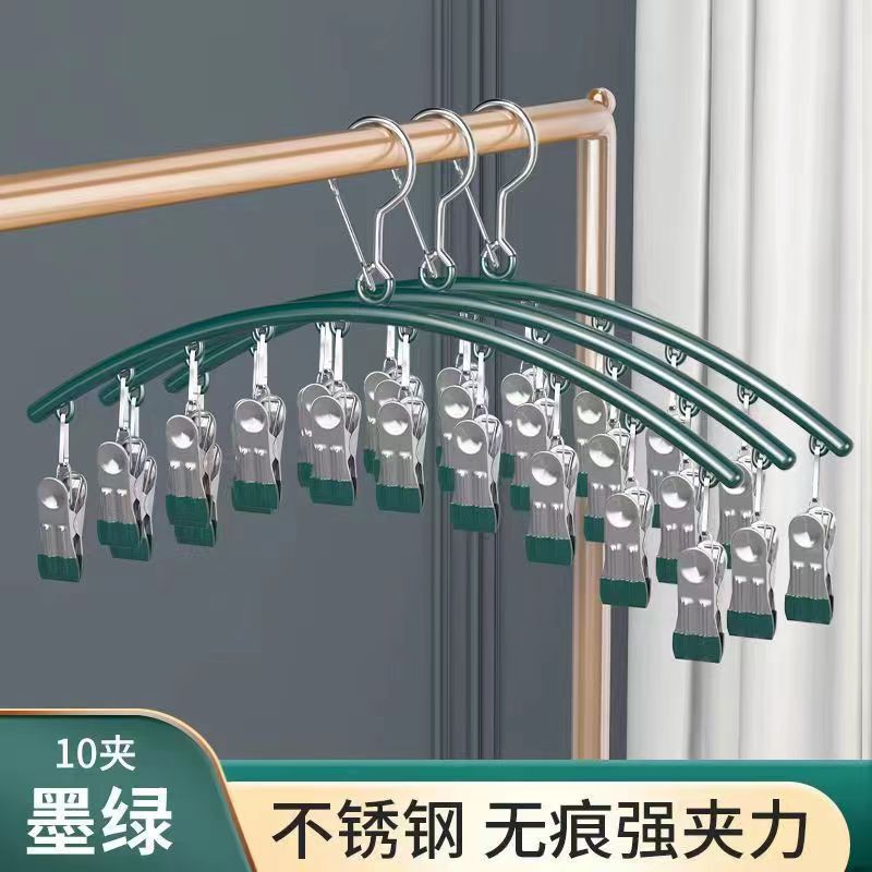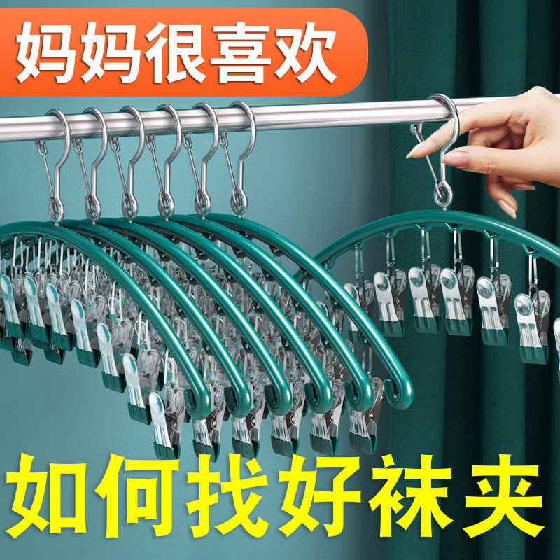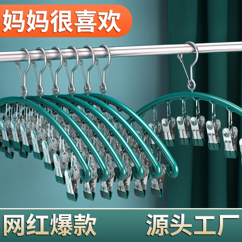 ステンレスハンガー多クリップハンガー靴下ラック多機能衣類掛け防風インナーハンガー寮干しフック