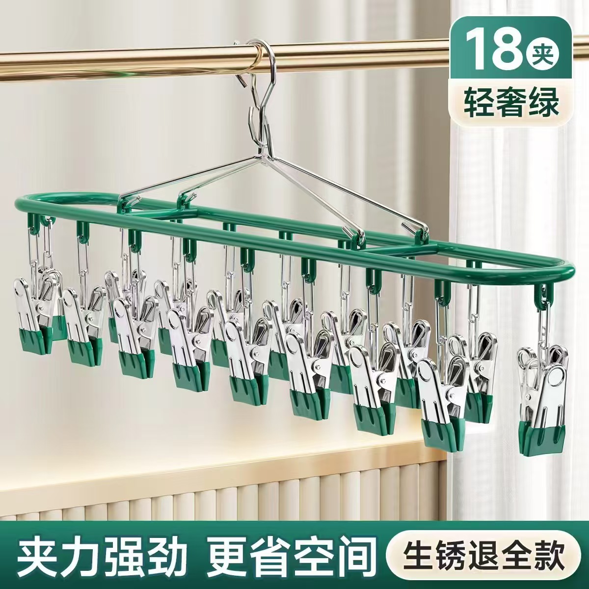 多機能防風多クリップステンレスバルコニー干し靴下神器家庭用無痕ハンガー