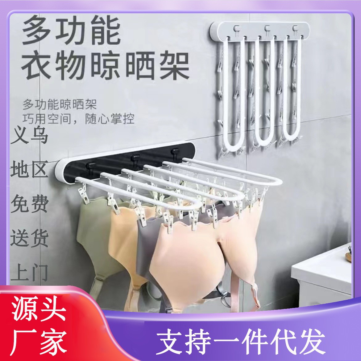 吸盤式折りたたみ下着・靴下乾燥ラック、バルコニー壁掛け多爪靴下乾燥ラック、防風靴下乾燥ラック加工品