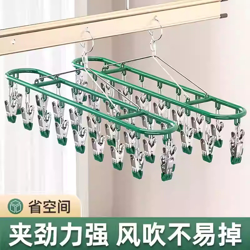 靴下挟みステンレス多クリップ靴下干し棚学生寮多機能防風ベランダ干し神器卸売り