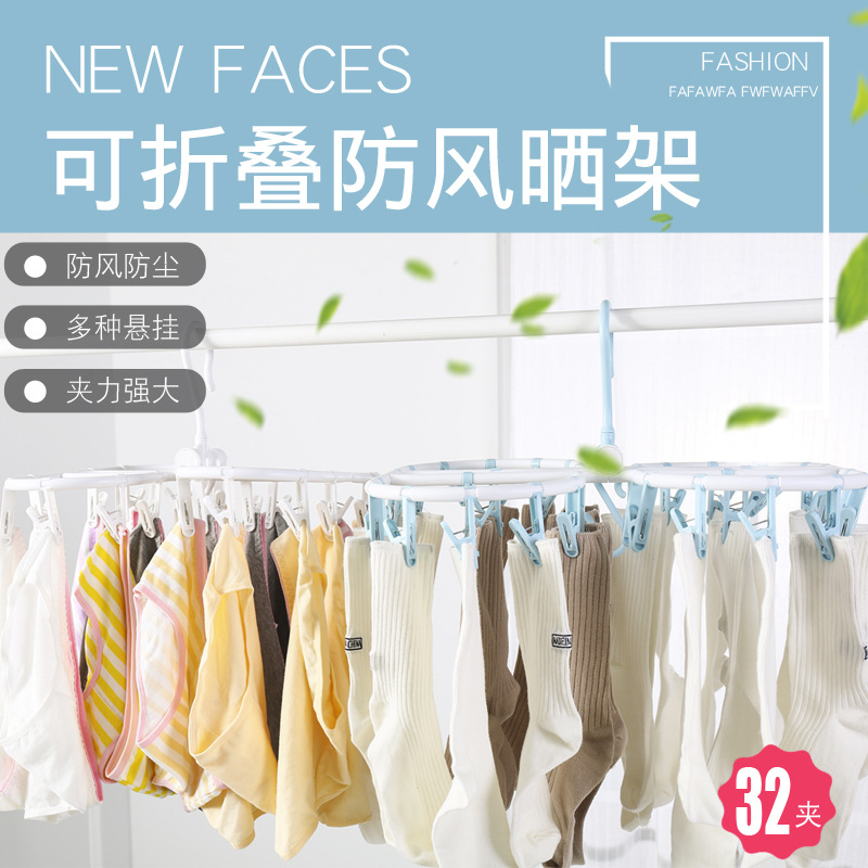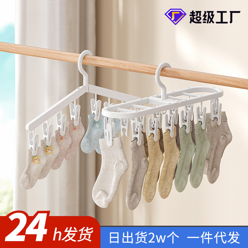 折り畳みハンガー多クリップ家庭用壁掛け靴下神器ハンガーベランダ防風下着靴下クリップ