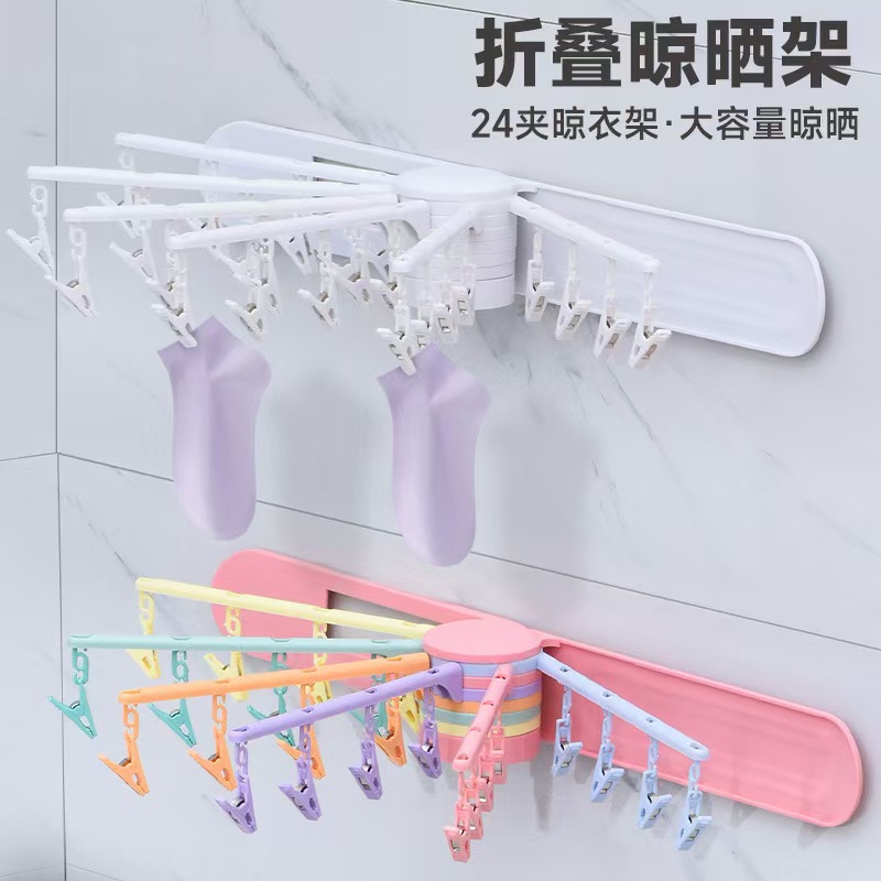 穴を開けない多機能干しラック折り畳み可能靴下クリップ壁掛け式ベランダ下着多機能クリップ