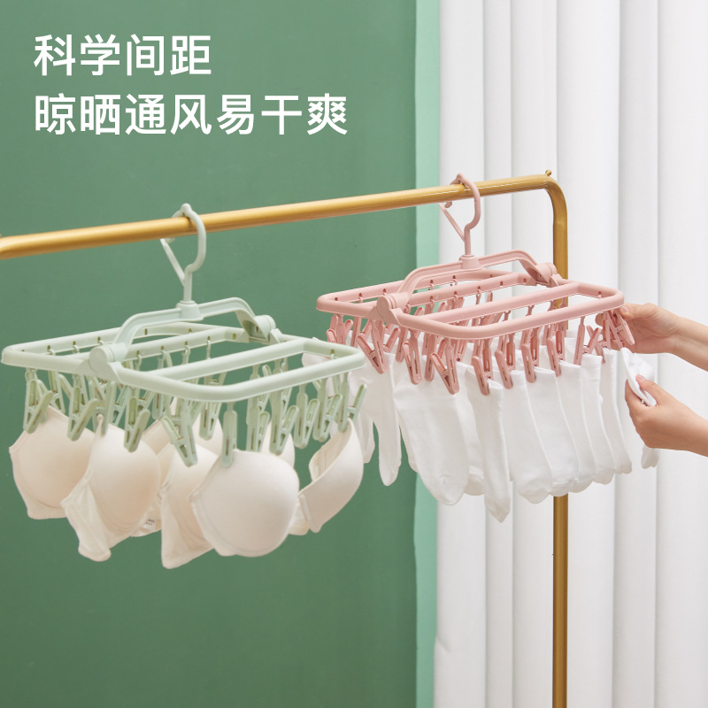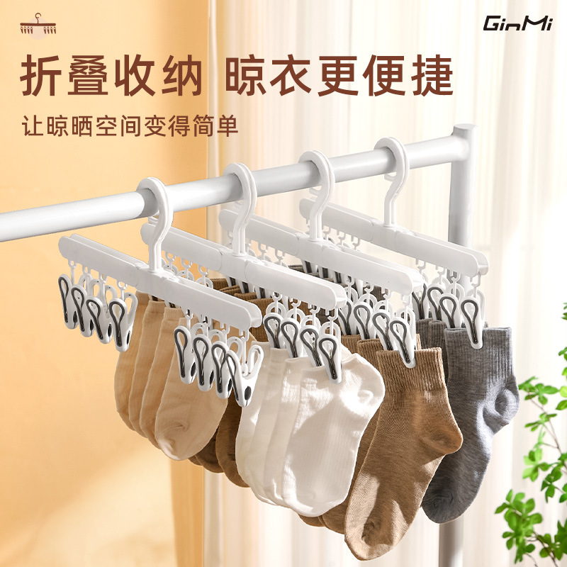 靴下干しハンガー多クリップ折り畳み回転ベランダ家庭用下着多機能穴なしハンガー神器
