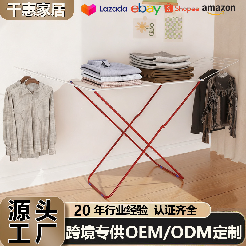 国境を越えた折りたたみ式物干しラック工場、蝶型収納衣類ハンガー卸売、設置不要の折りたたみ式翼型ベランダ物干しラック