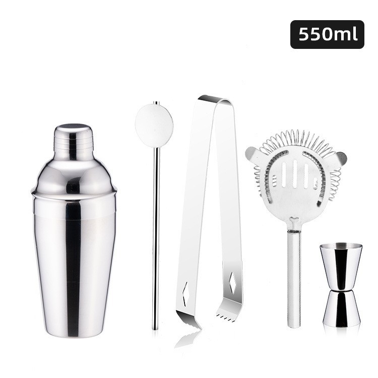 新品550mlステンレス製シェーカーセットカクテルポットシェイクカップ5点セットバーバーチューニングツール